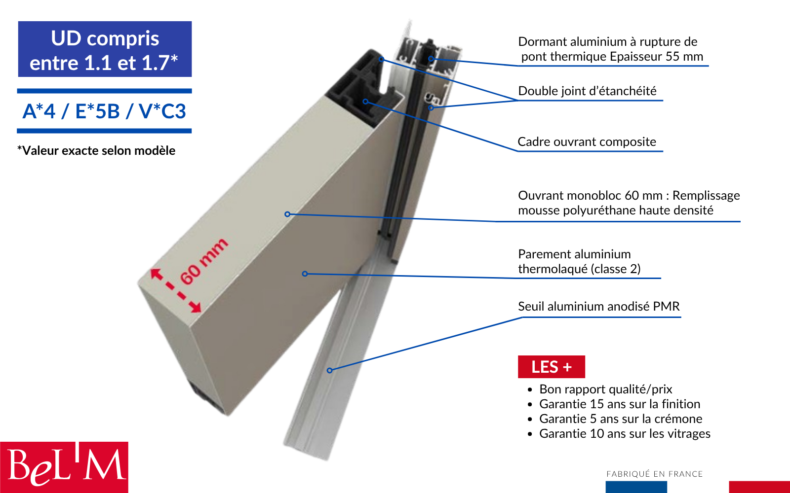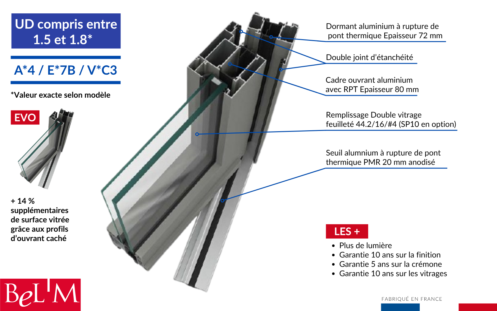 - L'aluminium est un matériau réputé depuis de nombreuses années pour sa qualité de finition et l’élégance de ses profils, il est aussi très résistant permettant la réalisation de châssis de grandes dimensions.