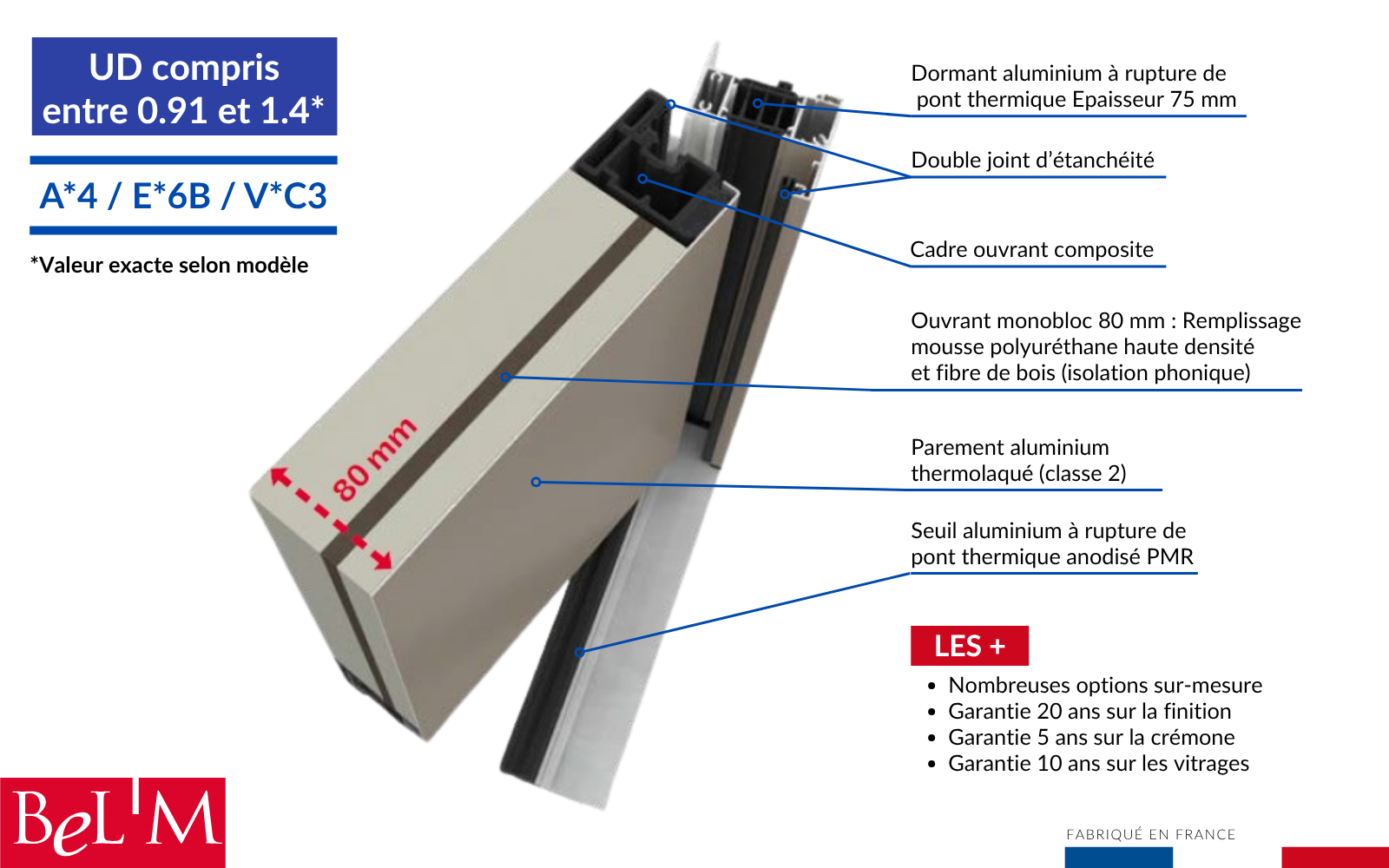 Notre partenaire fabricant nous permets de répondre sur des dimensions d'ouvrant allant jusqu'à 1200 mm grâce à une conception robuste et éprouvée.