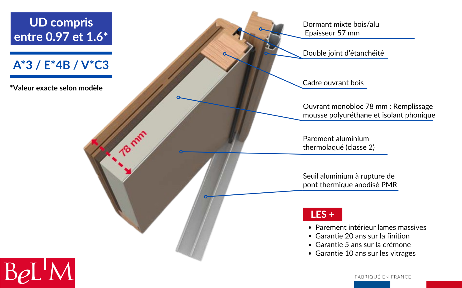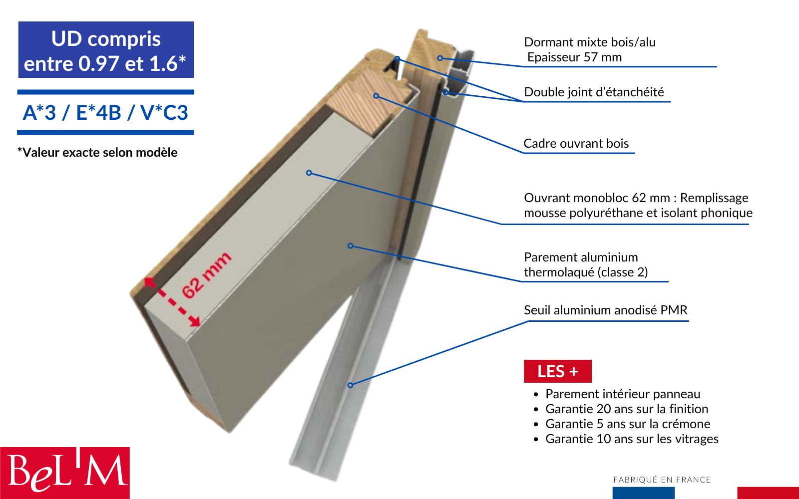 Nos portes bois/Alu sont fabriquées avec du bois certifié FSC, plusieurs essences sont disponibles, quant à l'extérieur, le parement aluminium laqué certifié QUALIMARINE est garanti 20 ans soit autant d'années de tranquillité pour vous.